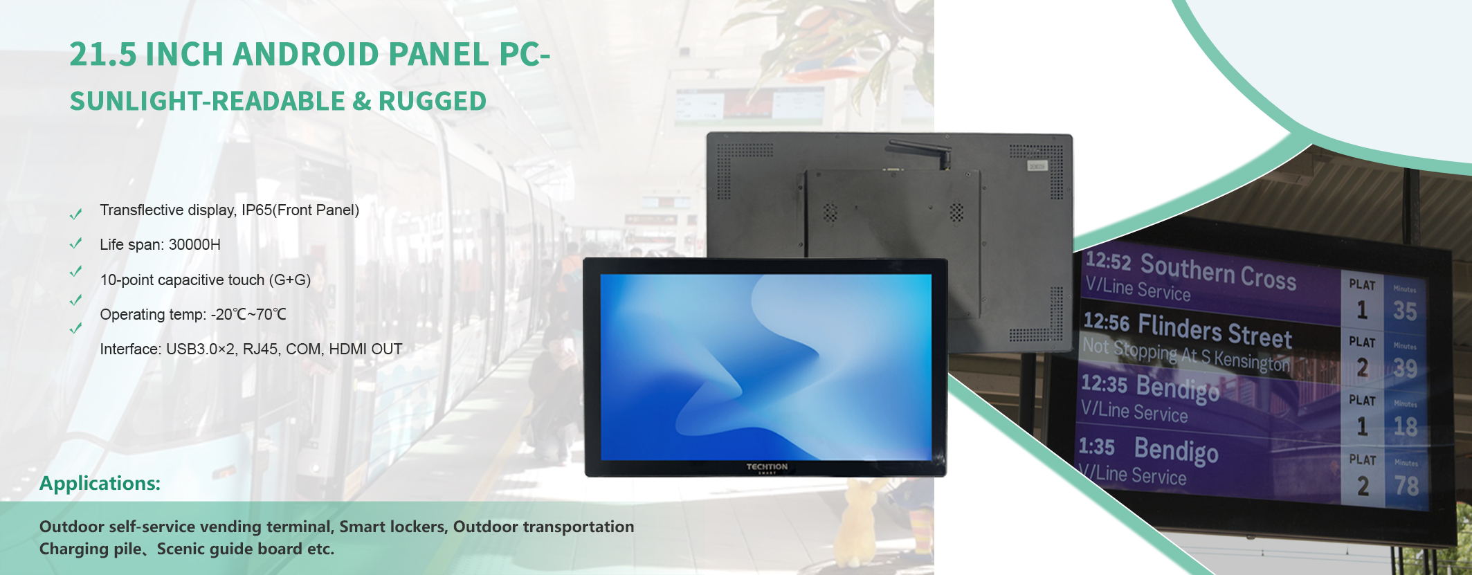 Techtion Smart specializes in tailor made low-carbon, energy-saving and eye-protection touch display terminal solutions, offering a comprehensive product portfolio including: Industrial Panel PC,Industrial Monitor,Rugged Panel PC,Outdoor Panel PC and Digital Signage.