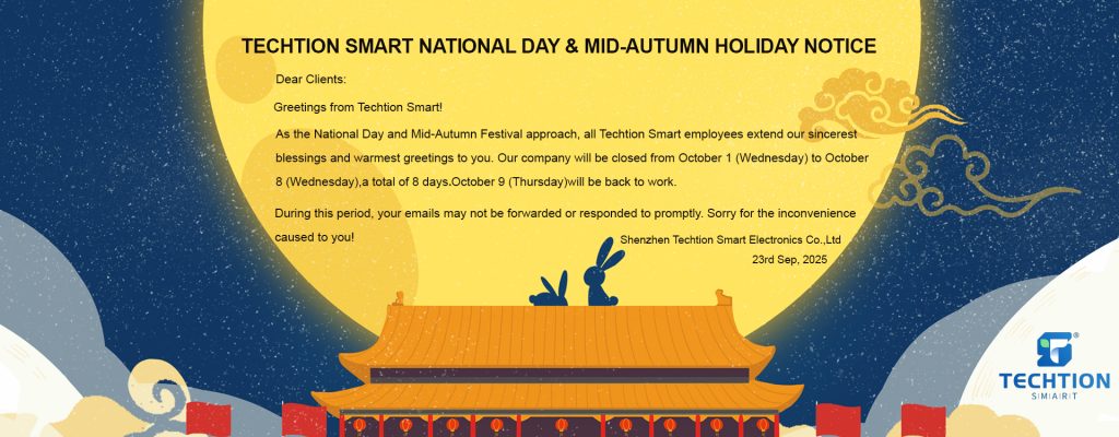 Techtion Smart Holiday Notice for National Day & Mid-Autumn Festival (Oct 1-8)